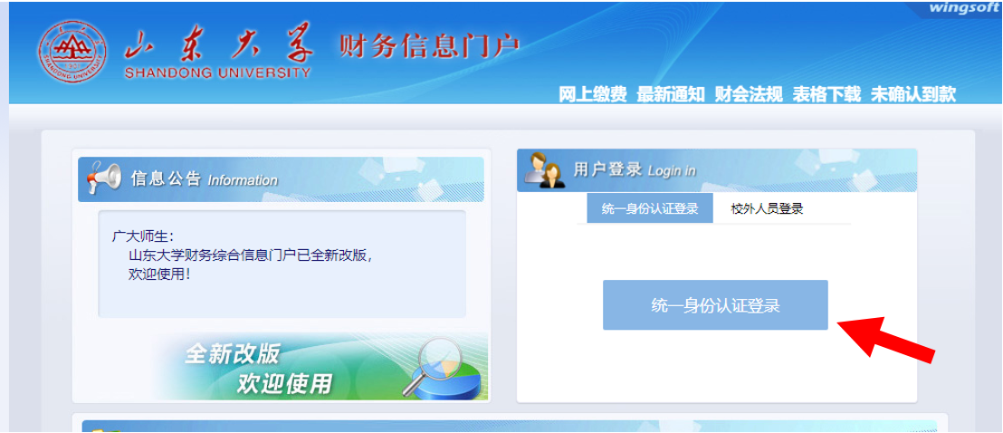 一是,直接点击“财务信息门户”中的“统一身份认证登录”。