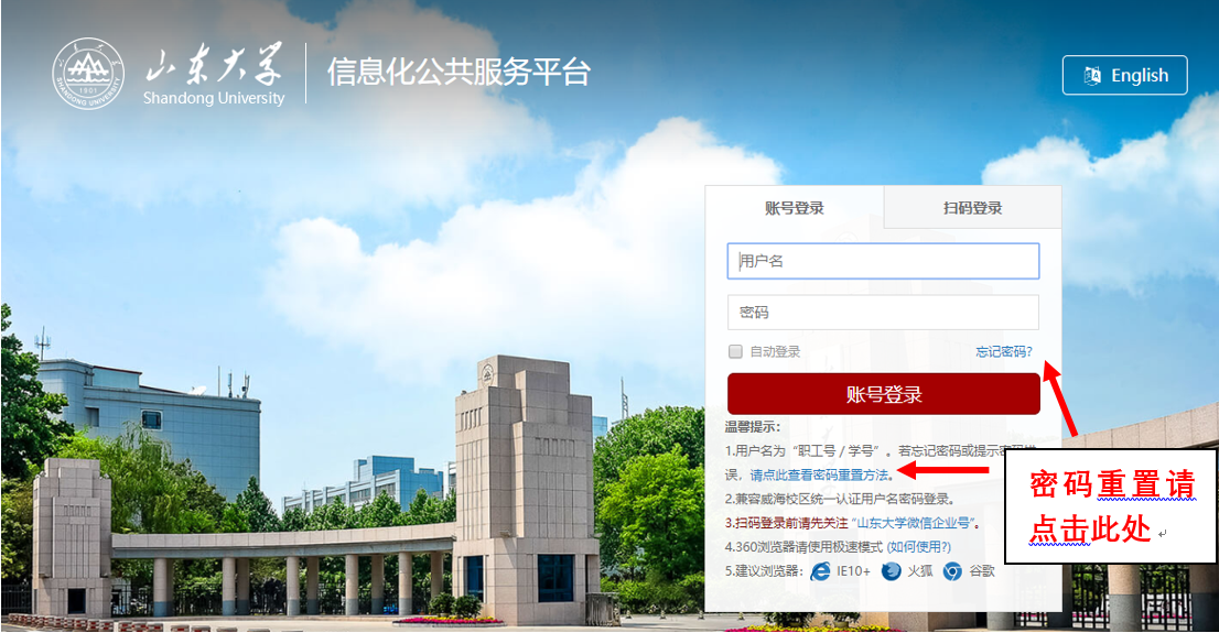 如果统一认证密码遗忘,请点击登录页面中的密码重置。